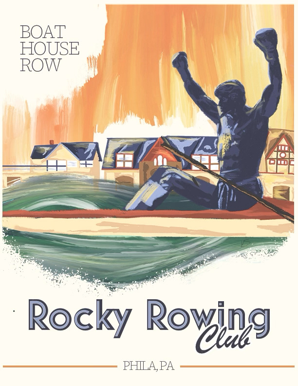 Illustration featuring Philadelphia’s boat house row and the famous Rocky statue